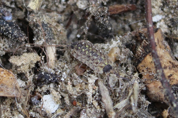 We have found different small animals hiding there. The spiders where quickly hiding some where else, so I did not catch them on camera. The isopod on the picture is well camouflaged.