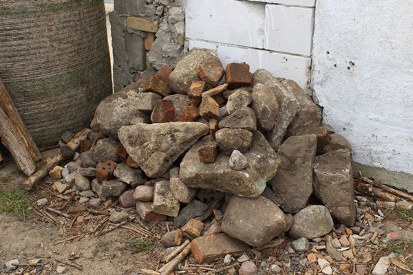 My husband then helped removing the bigger stones and then removed the compost soil. The stones are on a big pile and serve as a lizard house now and the compost soil is inside the fens with the plant beds waiting to be used again.