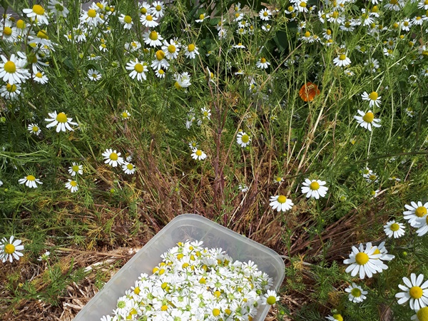 She is so very proud of her chamomile and the fact that we harvest of it for making tee.