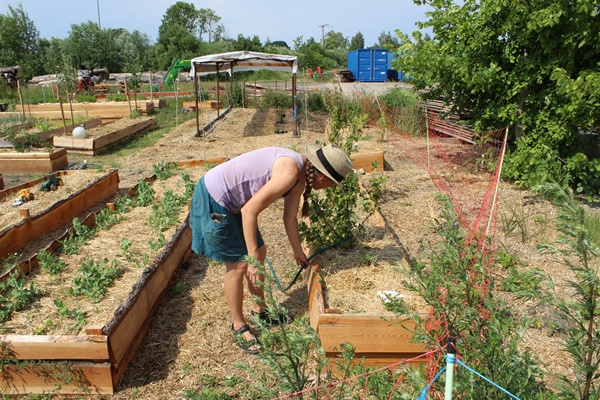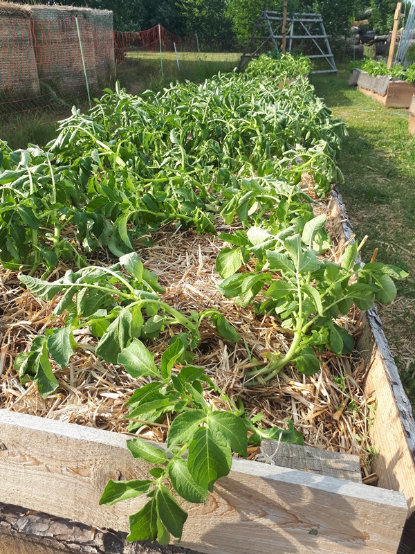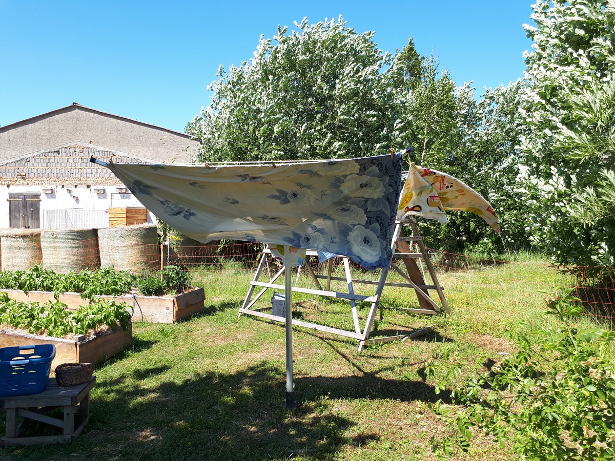 The laundry dried quickly, but the wetter is very difficult for the plants. The raised beds where only made this spring with normal soil and do not hold the water very well jet. The soil has very much dried out by now and we need to water the plants. At the moment we need to do so with a water barrel and a garden hose. It takes a lot of time to thoroughly water the beds.