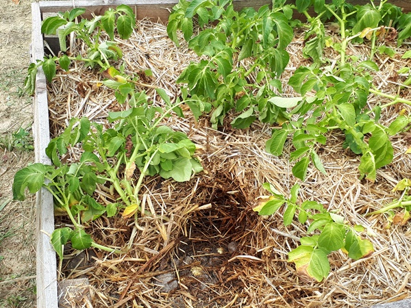 These potato plants where not looking very well after the heat and the drought, so I decided to start harvesting them.