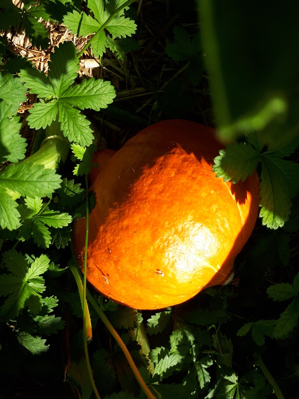 There are a number of Hokkaido pumpkins turning orange, so soon we can start to harvest them for direct use. If we want to store these they need to ripen completely first. My son is already looking forward to the pumpkin soup I will be making.