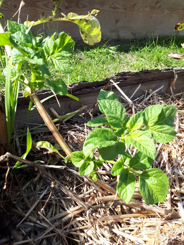 The potatoes that had died back are partially making new leaves since the rain came. I should not take to long to get these out of the ground, because otherwise the potatoes I want to harvest will grow new and I will be left with only small potatoes.