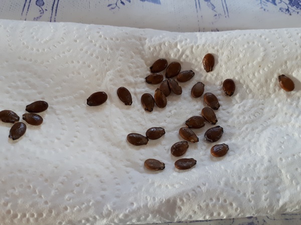 I did not really expect to have my own water melon, because the season is to short here. On the other hand the sun is so intensely here that I hoped it would be possible when I plant the watermelon under the greenhouse roof and it worked. I have missed the ideal harvest time, but the water melon still was very tasty. It looks like some of the seeds inside the water melon are already sprouting and I have collected some seeds that still looked good hoping that I can use them for growing new water melons next year.