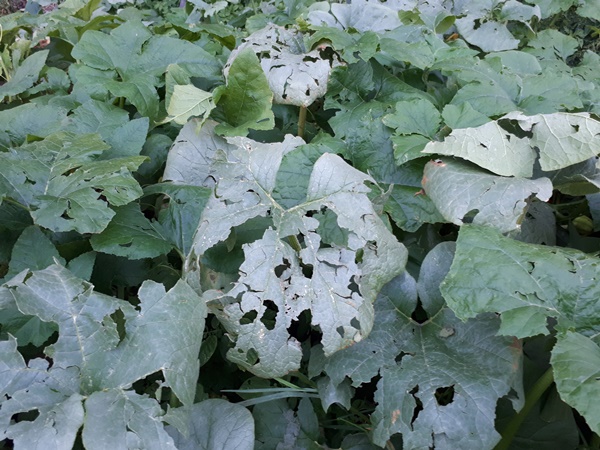 The leaves of the pumpkins are shredded and I made a short film of the hail from inside our caravan. It was very loud and we all put on ear protection.