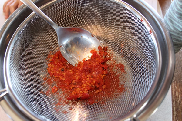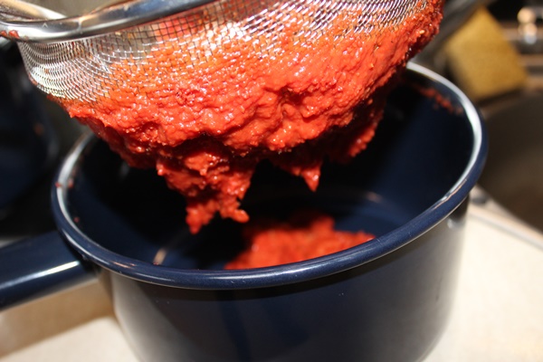 The pulp was very thick, so I added some water and heated it up again to fill it up in glasses. After the rosehip pulp cooled again I keep it in the refrigerator.