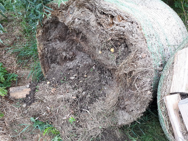 The potatoes in the straw bales seemed to do well despite the heat and the drought. The plants where nice and green, unlike many other plants turning yellow. Such decomposing straw bales do keep moisture in well.
