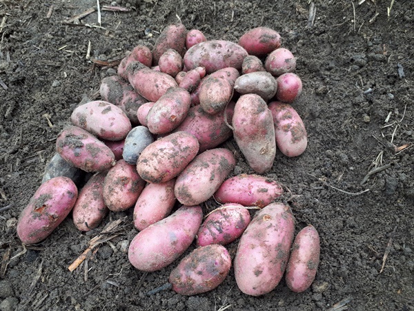 Unfortunately some straw bales fell to the side and the rainwater just run to the ground without soaking into the soil for the potatoes. These 2 straw bales did not give many potatoes and they where very small.