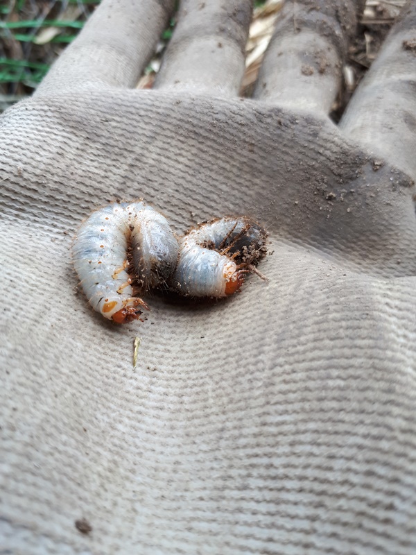 In one of the straw bales I found around 30 pieces of larva of a cock chafer very compact together. I searched and hope I found all. This straw bale did not give much yield as well.