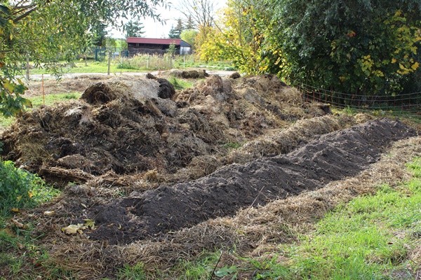 The straw bales have decomposed so much by now that we removed the netting around them and have a somewhat messy pile of straw left. We will leave it over winter like this and see how much it will decompose further. I hope in spring it will be ready for us to grow food in it. For now the pile of straw is still a wind protection for the hill beds beside it.