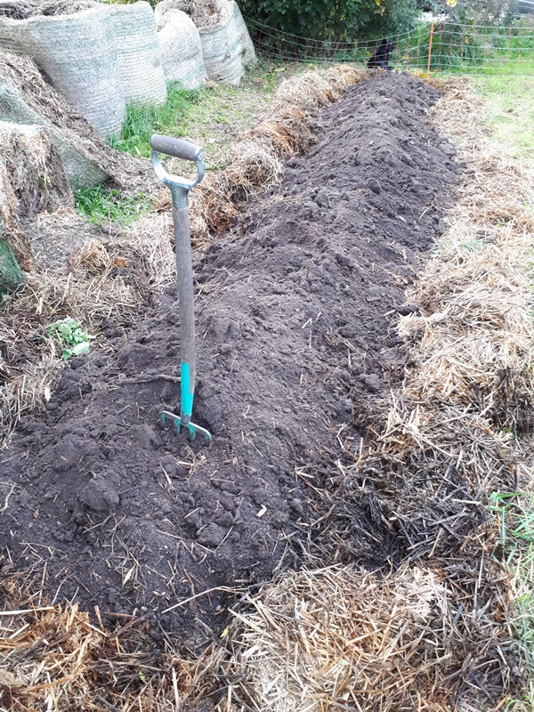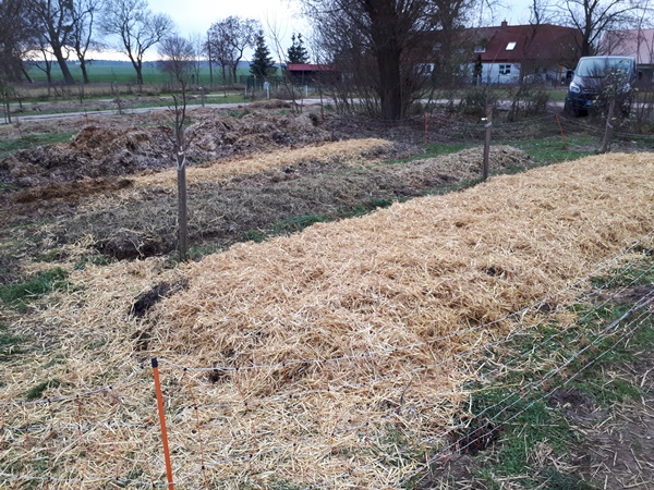 This last bed is also flattened out and got a layer of straw, since this is what I had to hand. These beds are ready for use in the spring.