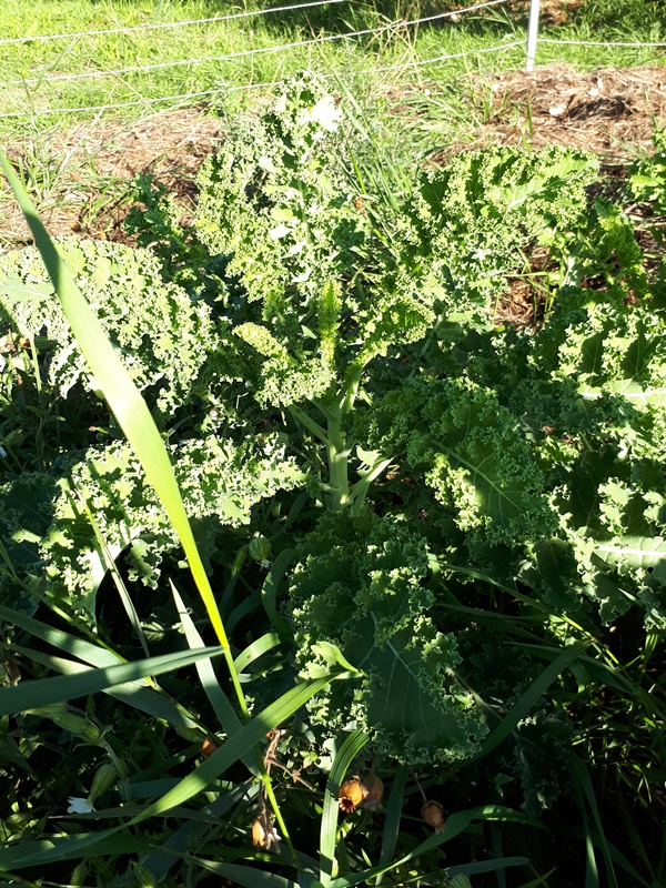 This kale, I did not cover and was amazed that for a very long time the cabbage white did not find it. The kale grew nice and big until they did. The caterpillar devoured the kale, but the top stayed undamaged and the kale grew on a little again. What I wonder is, if I had not “cleaned” the bed from all of the big weeds overgrowing the potatoes and kale, would the cabbage white still have found the kale, or not?