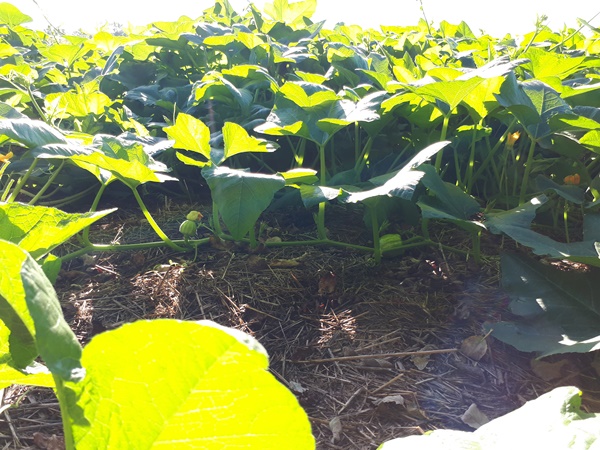 The pumpkin plants grew very big and spread everywhere. They looked nice and healthy and we had a big harvest from only 3 plants.