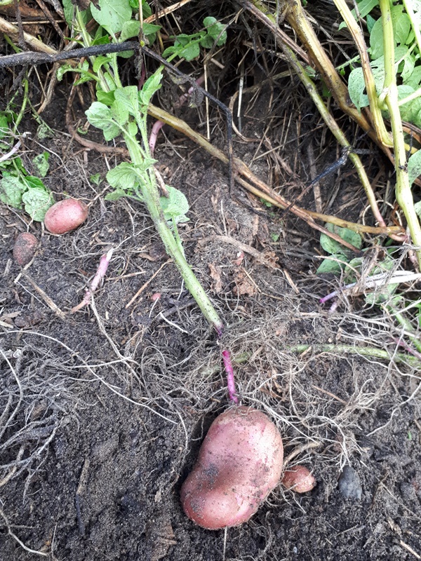 The 3 rows of potatoes, I only harvested a few days ago. Everything looked bare and brown compared to the summer, where the plants looked green and beautiful. Luckily not many potatoes where damaged by frost, despite the fact that the potatoes where barely covered by mulch. There where clusters of many small potatoes, but there also where a number of bigger potatoes. I harvested about 8,5 kg. Not bad from potatoes left from last years harvest and just put into the ground somewhere without really caring for them.