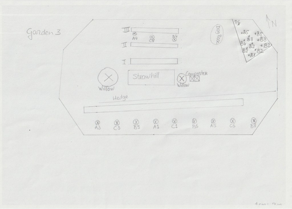 We got 5 different kinds of blueberries with different ripening times and so I updated my garden layout of our garden 3.