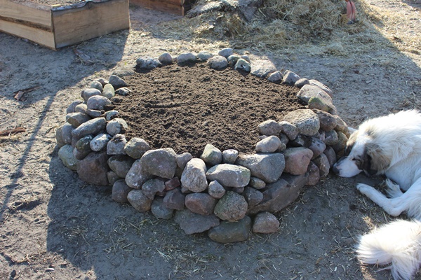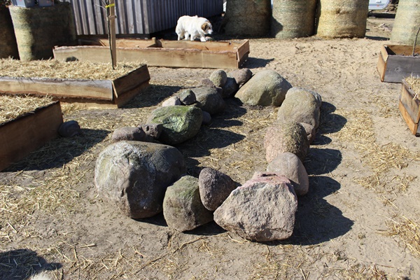 The stones retain the heat of the sun and keep the temperature at night a little higher. I hope to have better results with tomatoes and eggplants in the larger stone bed compared to the normal beds with wood around them. First I am going to use the stone bed for early sowing under cover. Tomatoes and eggplants can’t be planted outside until the middle of Mai any how.