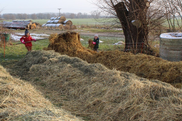 Finally we made it to cover our plant beds with straw. I had 3 byssi helpers and the job was quickly done. Hopefully the garlic I planted did not take damage of the frost without the protection of mulch. The other plants do not necessarily need the protection against the cold, but I like to cover the ground and keep the moisture in the soil this way. This is mainly in the summertime important, because the sun can really burn although we are not in a Mediterranean climate. We will see what the beds do this year.
