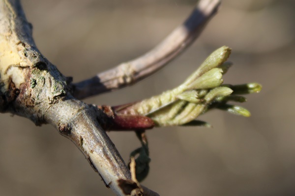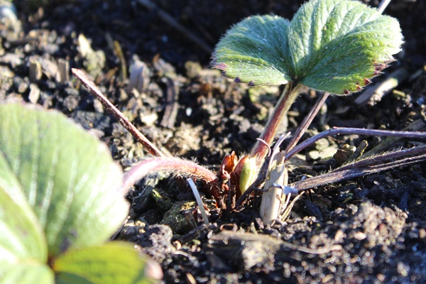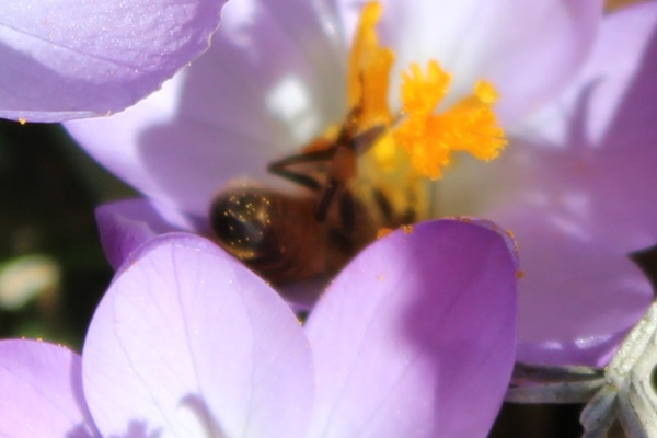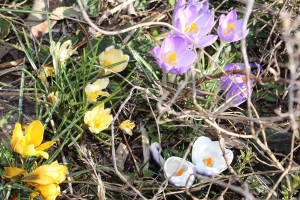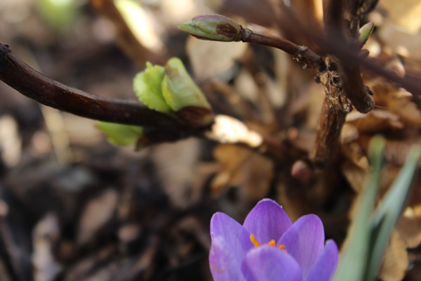 Since my last post about the spring we had some nice and sunny days, so the crocuses have opened up there flowers to invite the insects. We have found some bees to be very busy with the crocuses. The peony sticks its tips just out of the ground. I just love the flowers of the peony. The strawberry plants are showing some beginning of new growth. I even found one single dandelion. Last year we had a pair of coots nesting in our pond and apparently one coot has already returned. We had found it swimming and eating in our pond and I am very happy it did not fly of when our dogs came closer. Other than that some plants are already showing signs of the coming leaves. Here are some impressions of what I have found on our property.