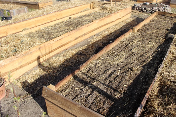 Then we filled 4 beds with onion sets. With 3 beds I sowed 3 rows of carrots in between the rows of onion sets. I also put a layer of straw on these beds, but a thinner layer. I am not sure if it is a good idea to put straw over the sown carrots, but we will see if they come up. I planted following onion sets: Rosanna, Karmen, Alpha, Sturon, Stuttgarter Riesen & Snowball. I sowed following carrots: Robila, Treenetaler, Rote Riesen 2, Milan & Vitella.