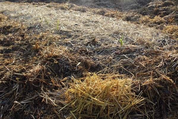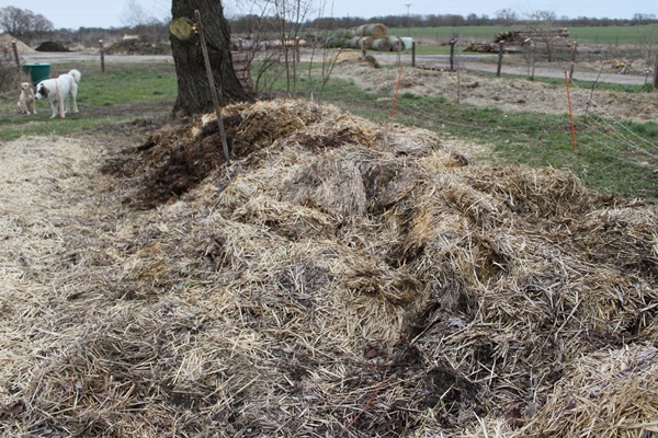 About the wind breaking straw bales, which are more like a straw hill the kids love to play on, the straw is wet and partially black, but not really decomposing yet.