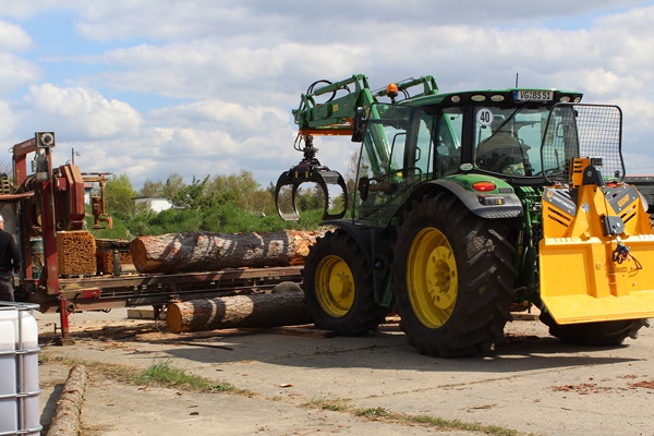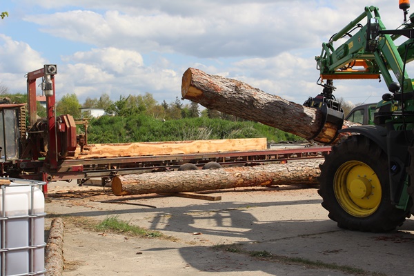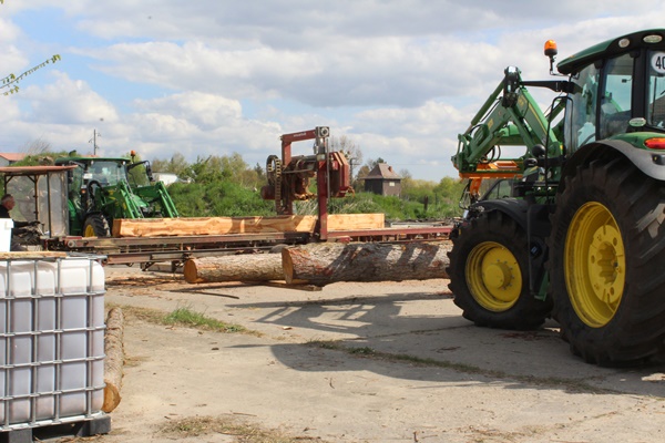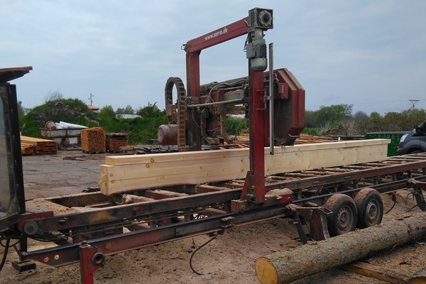 The mobile sawmill was automated and could lift the logs on the saw bed it self. Also the logs could be turned as needed. The cutting went relatively quickly and one tractor was standing by to take of the lumber and one tractor brought new logs.