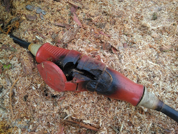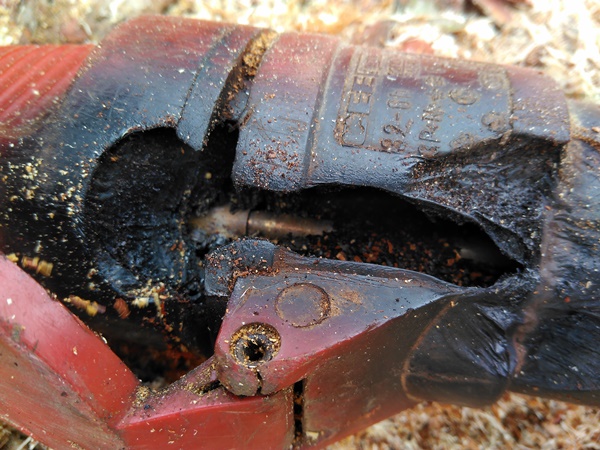 After we finished and where cleaning and packing the sawmill we found a big problem. The plug connection at the sawmill hat shorted out and partially melted. We where lucky we did not have a fire.