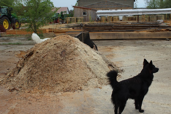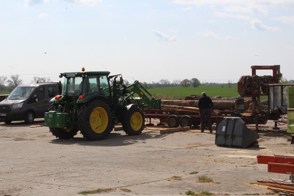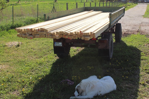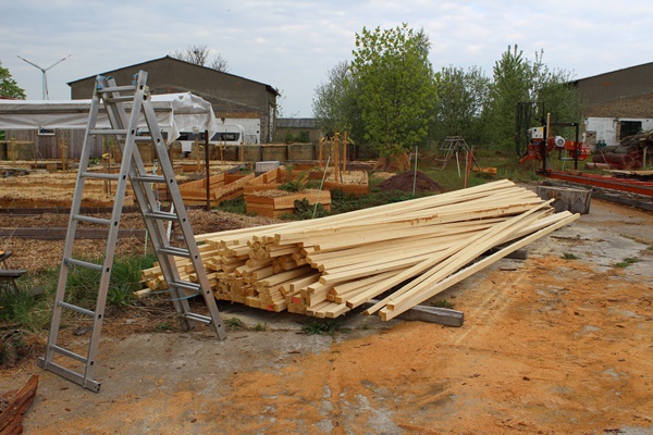 We where prepared. We cleared a big space in the yard for the sawmill and made space to put all of the cut lumber. We also prepared more than enough spacers. We had a trailer from a local farmer to fill with the sawdust.