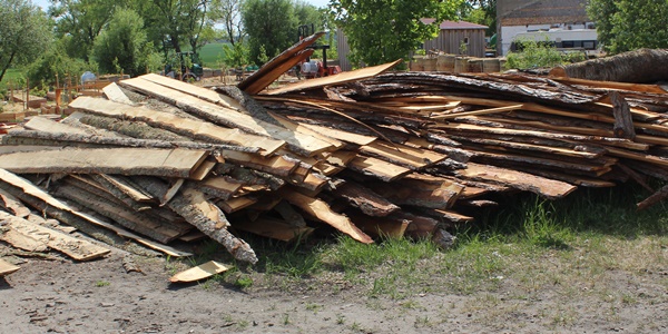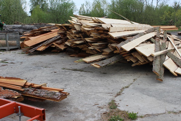 Although some lumber is already with the customers, because they where eager the get it. The rounded sides of the logs are happily taken by people for firewood, so from this is also gone.