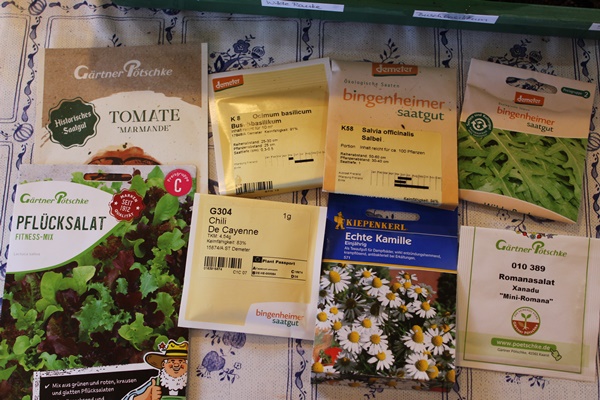 For a lot of crops it is time to start sowing, we still get frost at night while during the day the temperature rises to 15°C. The sun is already very powerful and starts warming up the soil. A few years ago we had made something like a very small foil tunnel to sow underneath, but I dedicated a whole plant bed as a seed bed. So the rest of the plant bed gets covered by straw (not to much). Straw isolates nicely and protects the upcoming sprouts from being eaten by the birds.