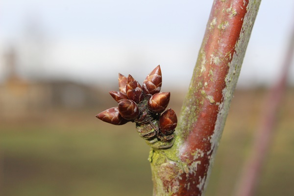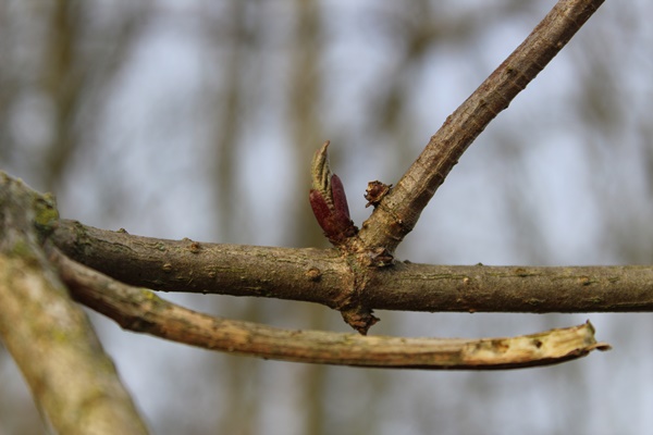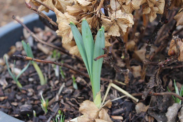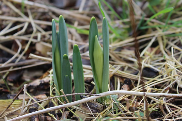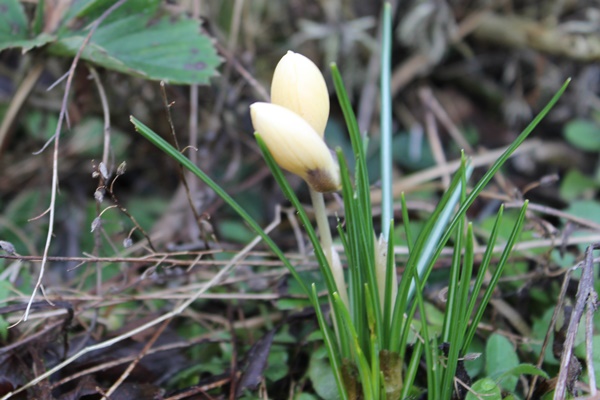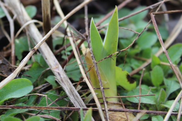 Since my last post about the spring we had some nice and sunny days, so the crocuses have opened up there flowers to invite the insects. We have found some bees to be very busy with the crocuses. The peony sticks its tips just out of the ground. I just love the flowers of the peony. The strawberry plants are showing some beginning of new growth. I even found one single dandelion. Last year we had a pair of coots nesting in our pond and apparently one coot has already returned. We had found it swimming and eating in our pond and I am very happy it did not fly of when our dogs came closer. Other than that some plants are already showing signs of the coming leaves. Here are some impressions of what I have found on our property.