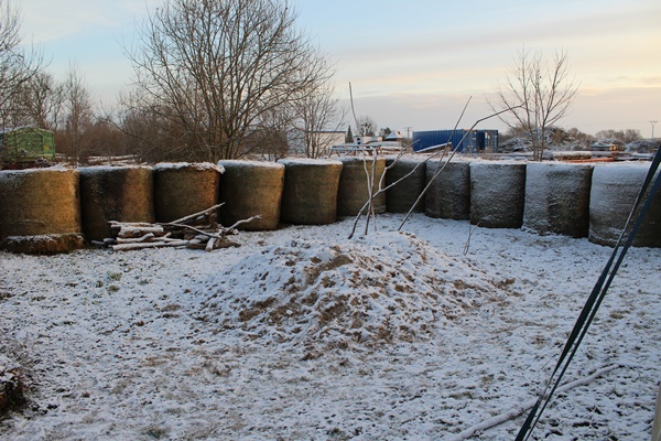 We got snow and some beautiful winter weather with low frost temperatures. To protect the bottom of the caravan against to much cold we collected snow and piled it up against the caravan to close the gab underneath. This way we can keep the wind out and it is a nice hide out for our cats.